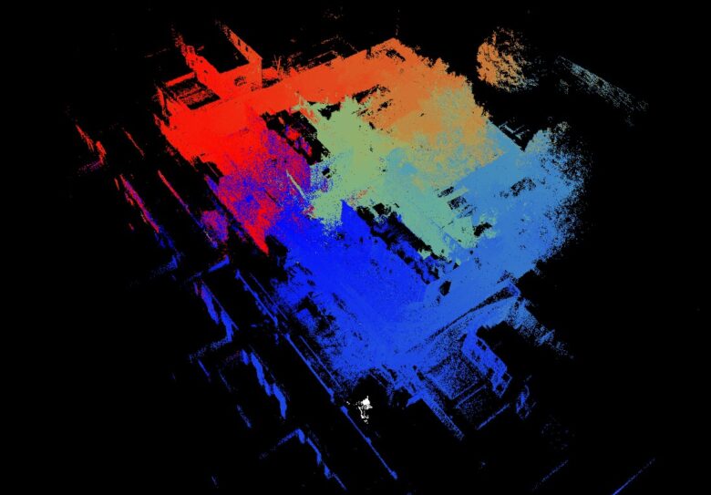 - A combined geo-referenced 3D laser scan point cloud of the surface locale surrounding the damaged properties.