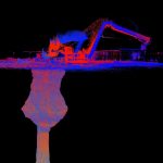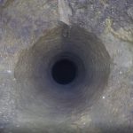 Geoterra’s experienced geospatial engineers utilised a specialist GeoSLAM ZEB REVO laser scanner, combined with a ZEB Cam and carried out a surface laser scan. The same scanner was then lowered down into the centre of the void with access provided by a long reach boom arm from a portable MEWP. Using a bespoke shaft bracket, complete with high-powered lighting the scanner was lowered to a depth of 45m in order to fully survey the sinkhole and bell pit. The survey was geo-referenced to OSGB OSTN15 National Grid.